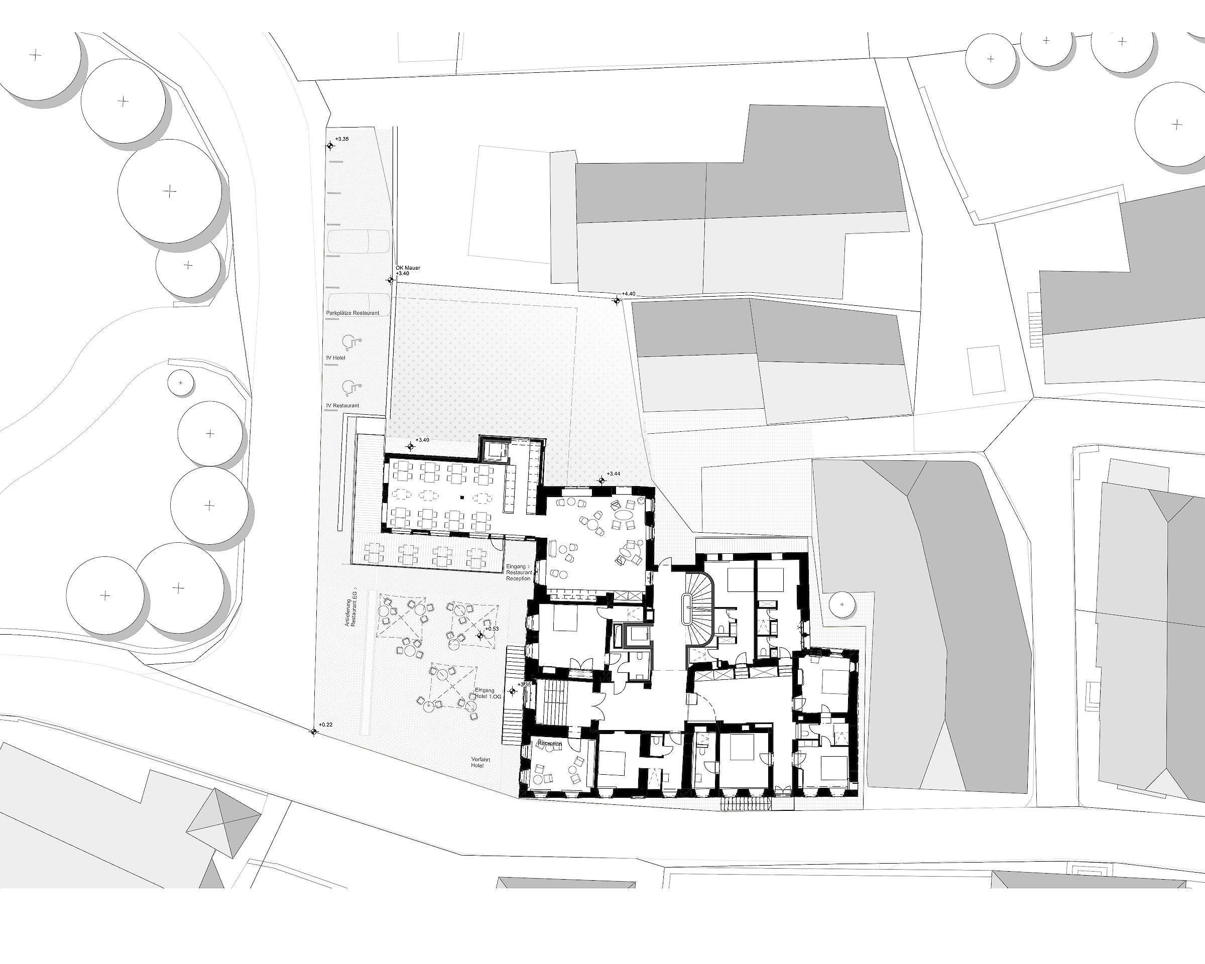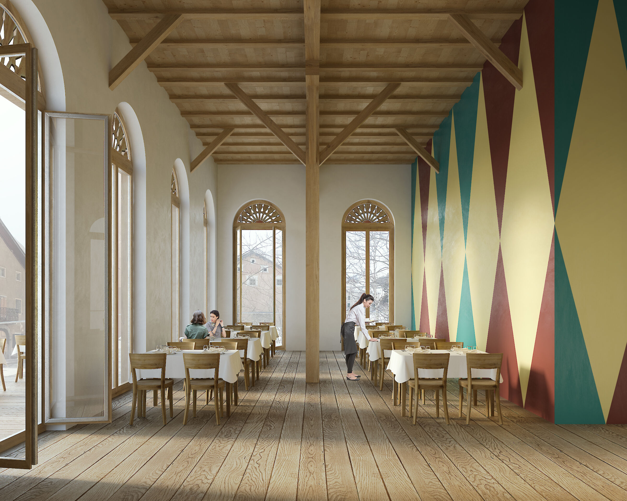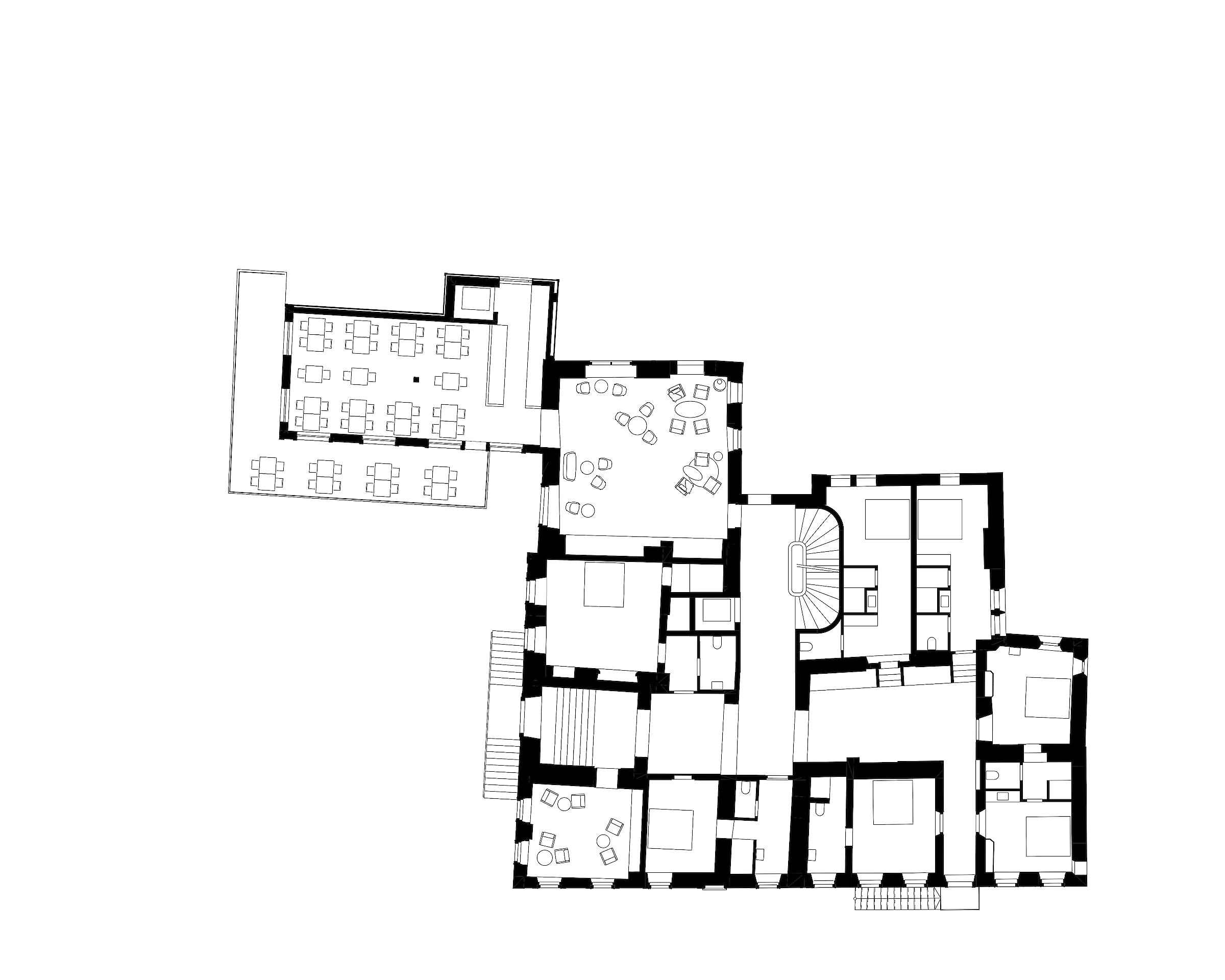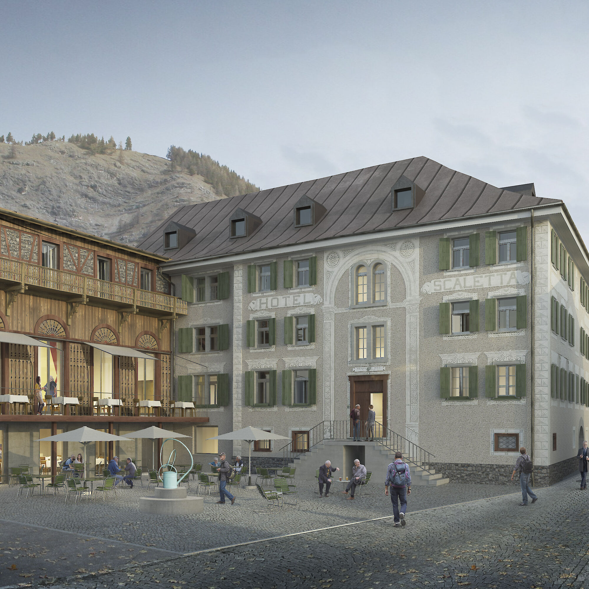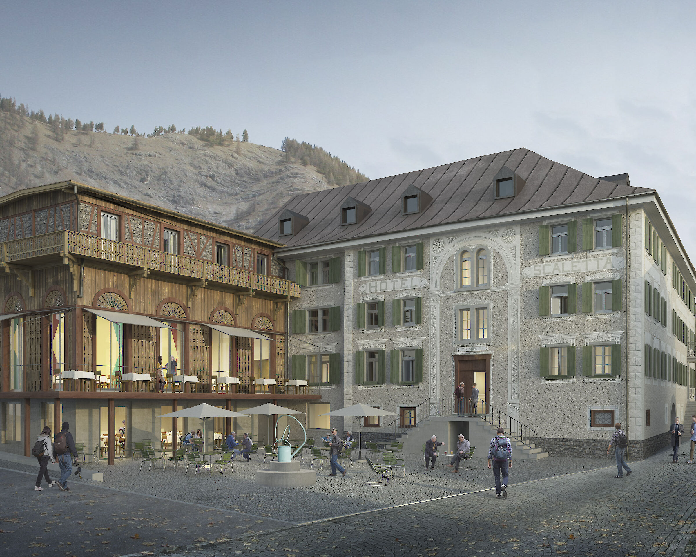 Neu entstehen 38 Doppelzimmer, verschiedene Restaurationsmöglichkeiten, ein Saal für unterschiedliche kulturelle und festliche Nutzungen sowie ein kleiner Wellness-Bereich. Das neue Boutiquehotel soll mit seinem vielfältigen Angebot wieder Treffpunkt für die einheimische Bevölkerung und Aufenthaltsort für Gäste sein.