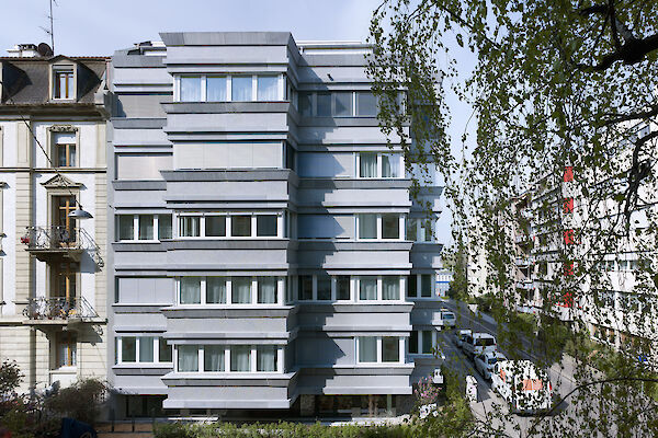 Der Neubau "Riehenring A" liegt im Norden von Basel auf dem Areal des ehemaligen Güterbahnhofs der Deutschen Bahn und ergänzt die geschlossene Bauform des Bebauungsplanes am Riehenring zusammen mit dem Projekt Riehenring B/C sowie dem Projekt Fossil.