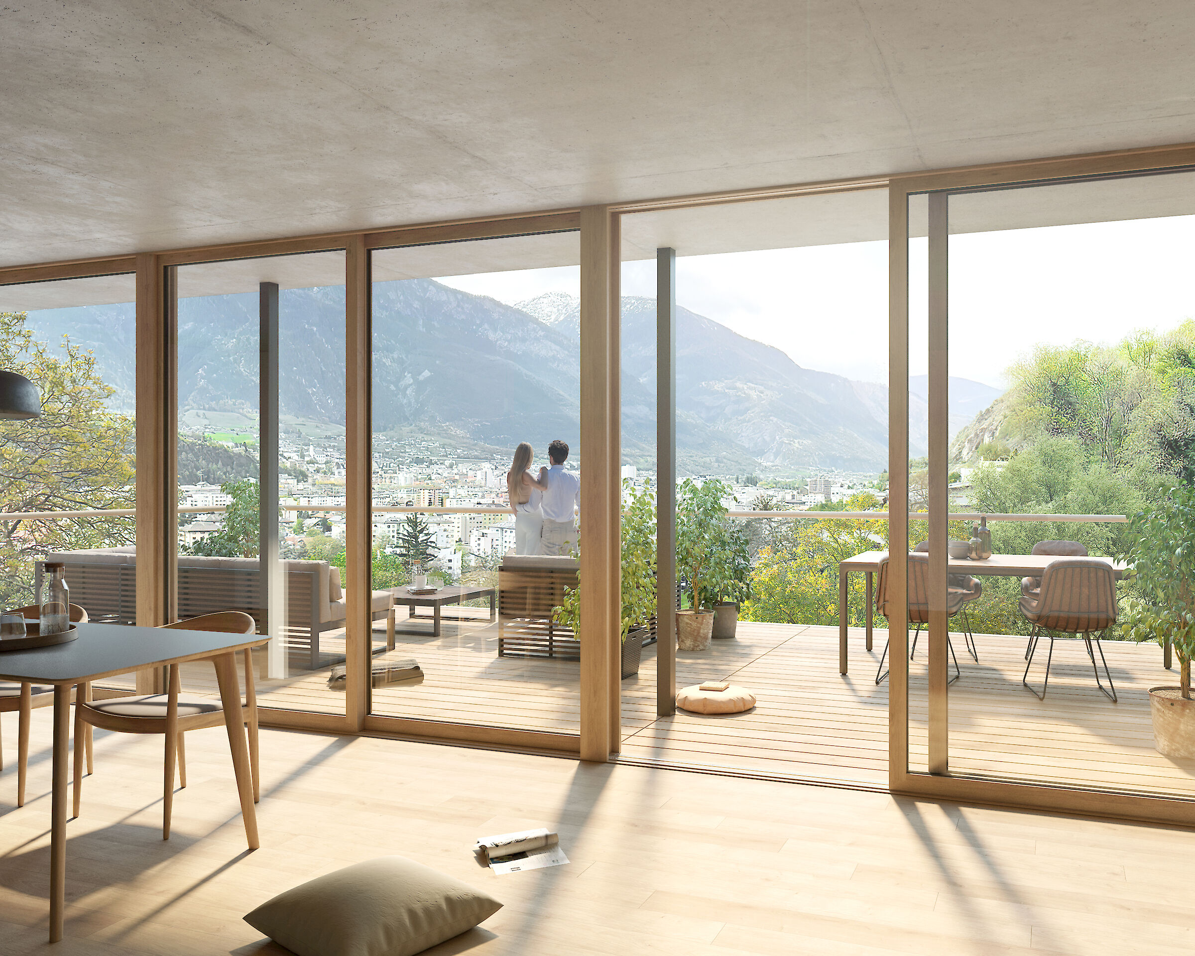 Das Areal Tschill befindet sich am östlichen Ortsrand der Gemeinde Naters. Es handelt sich um eine ruhige, von Einfamilienhäusern geprägte Wohngegend. Charakteristisch für die Lage ist der einmalige Blick Richtung Südwesten gegen das markante Glishorn.