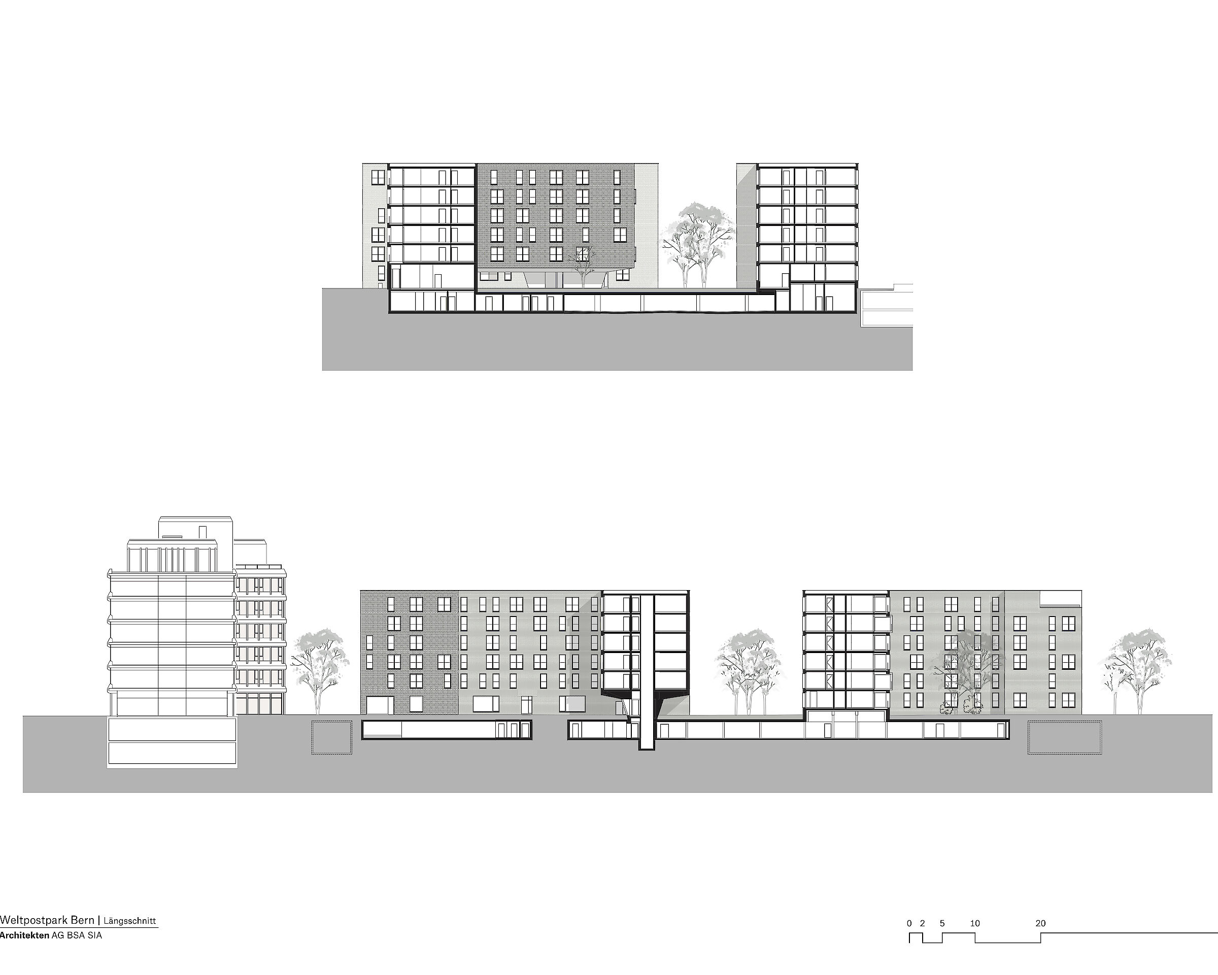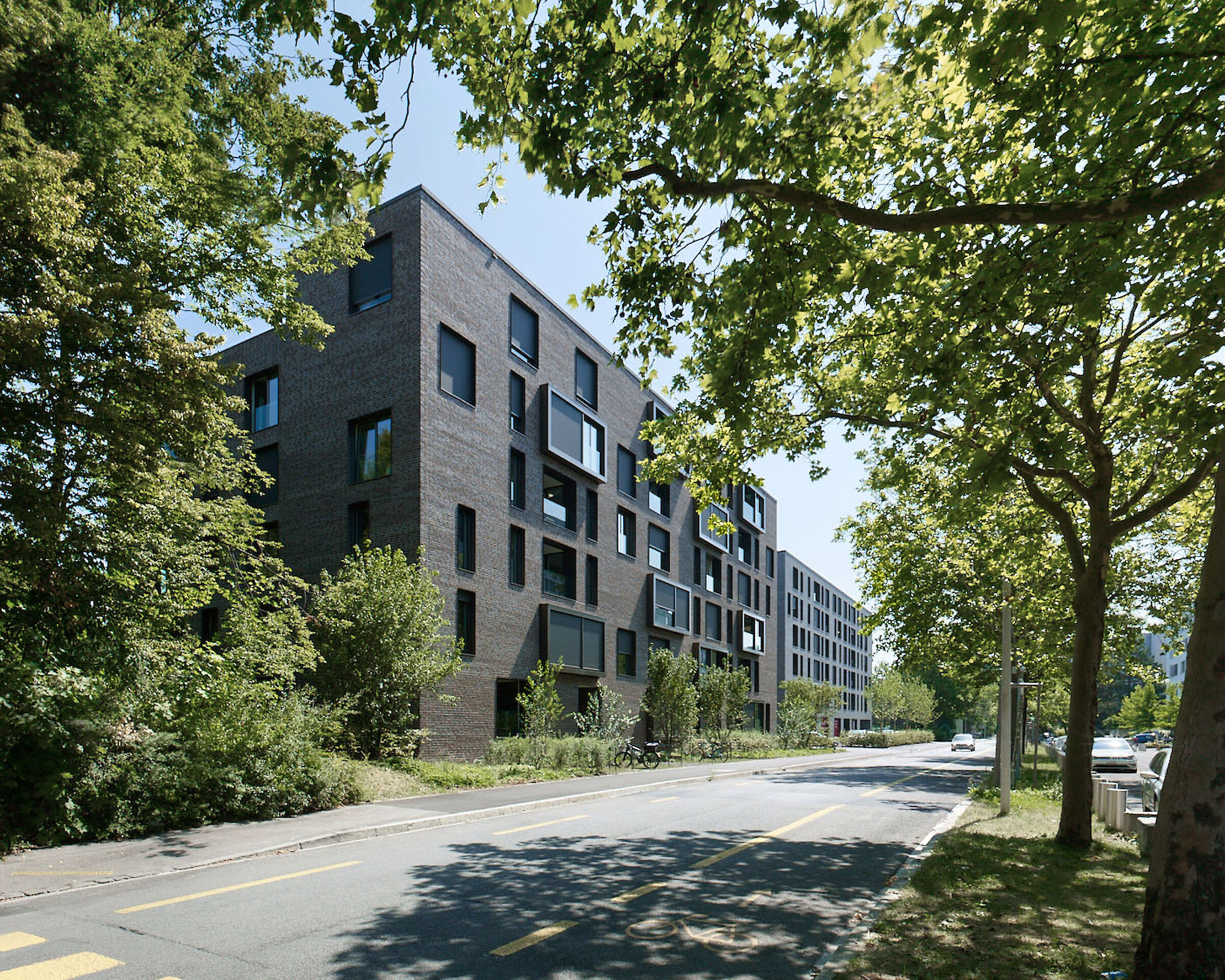 Die markanten, sechsgeschossigen Wohnbauten des Weltpostparks verdichten das Gebiet rund um das Murifeld in Bern und schaffen neuen, hochwertigen und gleichzeitig bezahlbaren Wohnraum. Durch die massiven, farblich voneinander abgesetzten Klinkerfassaden wirkt die Überbauung urban und bildet dennoch einen geschützten, attraktiveren Wohnort mit eigener Identität.